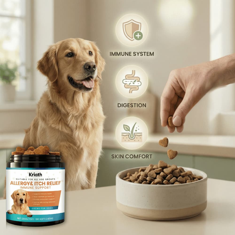 They promote the immune system, digestion, and skin comfort, and can be easily incorporated into your dog’s daily feeding routine.