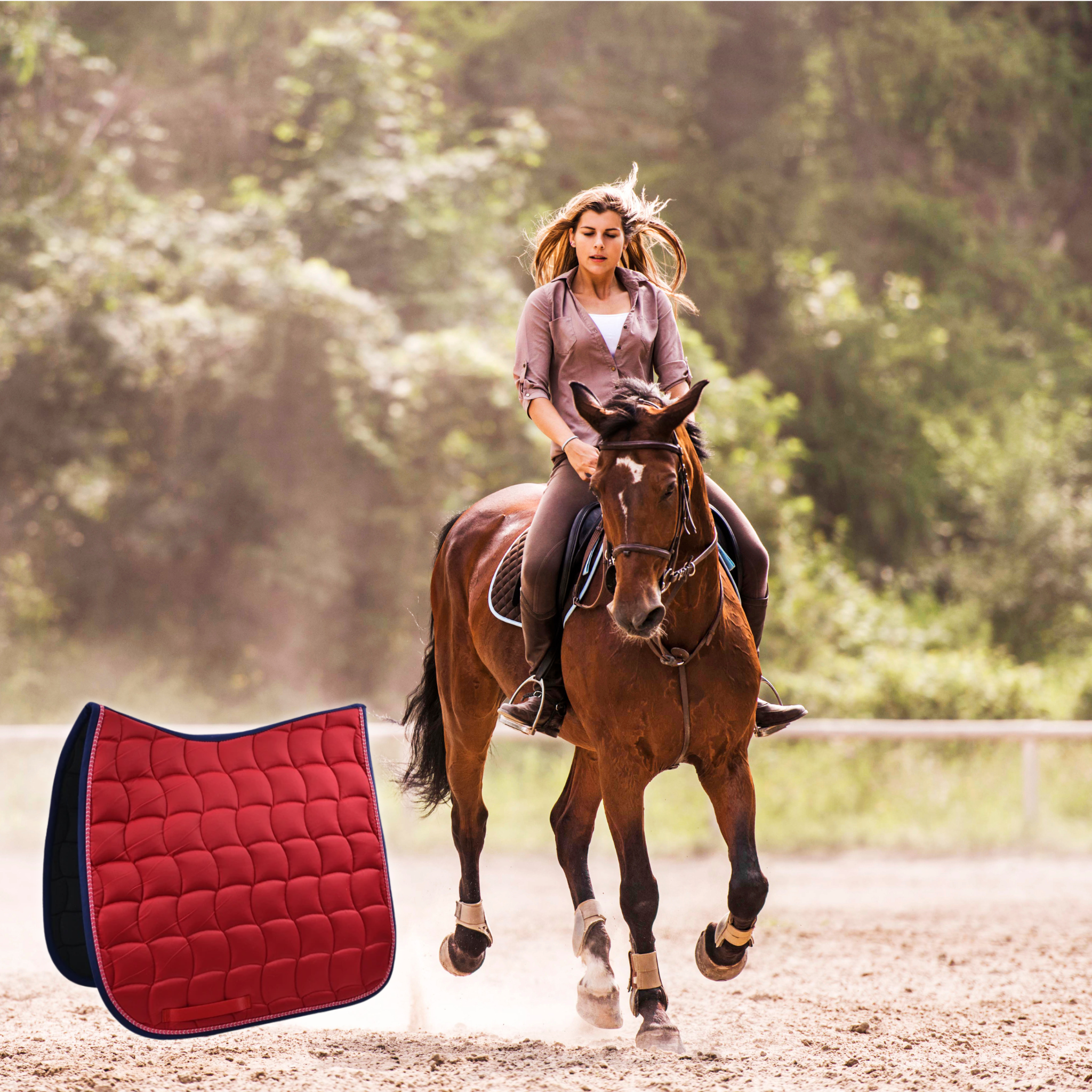 The combination of 10 mm foam and 300 g polyester filling provides excellent cushioning and reduces pressure points during riding. Plus, the breathable cotton and ventilated lining keep your horse cool and dry.